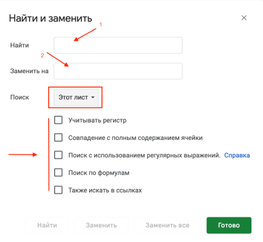 Появится окно, в которое необходимо вставить искомое слово и то, на которое заменяете, а также выбрать параметры работы.